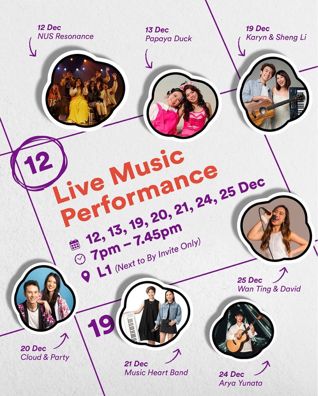 Come and join the festive fun filled with live music and cheerful visits from Santa Claus.